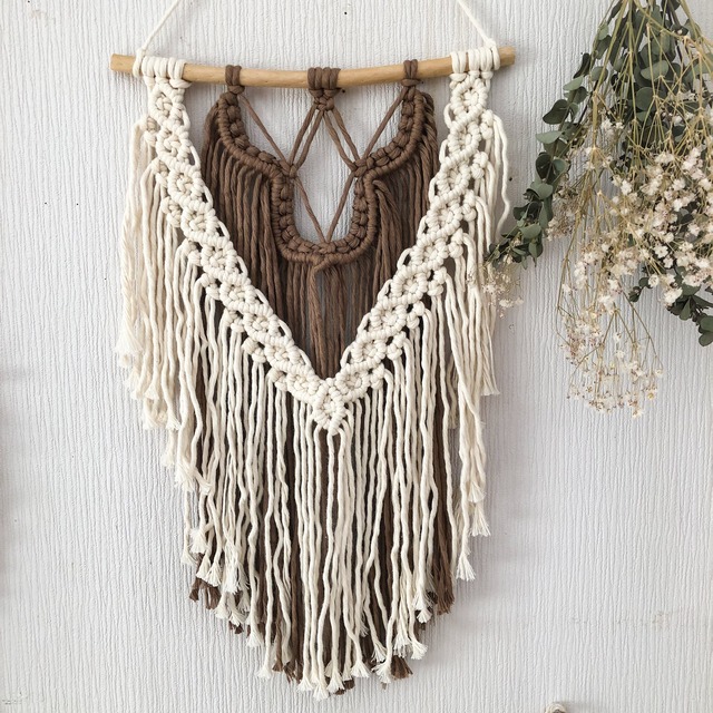モカカラーと2トーンのタペストリーです。 【サイズ】 流木 約27cm 長さ(流木から裾) 約42cm